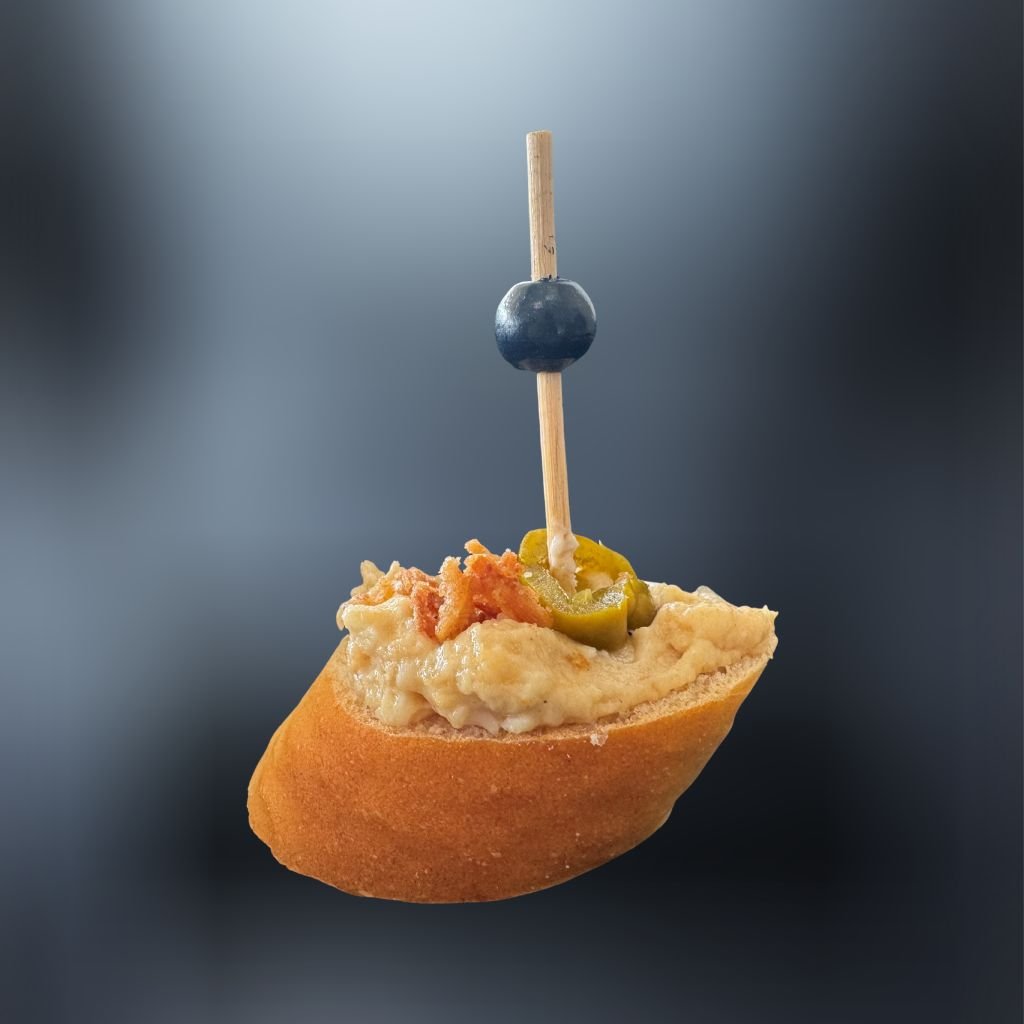 Na mäkkom rožku je natretá lahodná oškvarková nátierka, doplnená opečenou cibuľkou a výraznou jalapeno papričkou čím všetko spolu tvorí dokonalú kombináciu chuti. 😊🥖🥗
