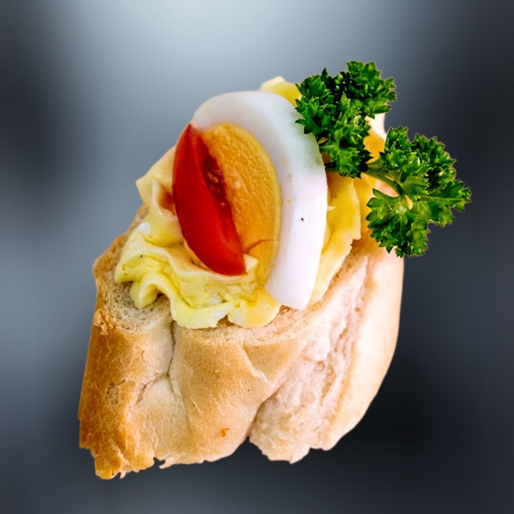 Kanapka na chrumkavej bagete natretá lahodnou vajíčkovou nátierkou, doplnená šťavnatou rajčinkou, sviežim ľadovým šalátom a voňavou petržlenovou vňaťou je dokonalou kombináciou chutí. 😊🥖🥗